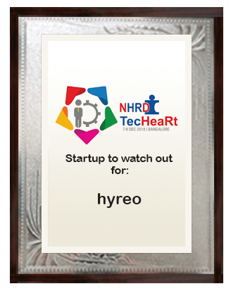The NHRD TecHeaRt program is a platform where technology is combined with “human touch” to bring a change in the current scenario of one-dimensional technological advancement. Hyreo was recognized for its contributions in creating a better approach in talent acquisition and was awarded the ” Start-Up to Watch Out For” title from the NHRD TecHeaRt conference held in Bangalore on December 8th, 2018.